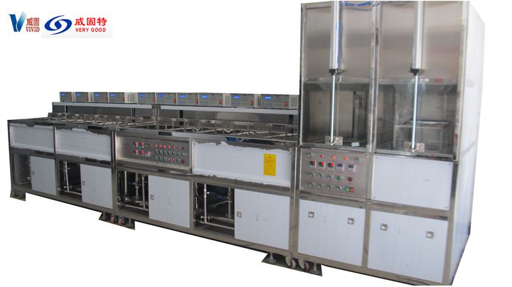 深圳威固特VGT-1509FT角反射器光學(xué)超聲波清洗機(jī)設(shè)備共有15個(gè)功能槽,配置有拋動系統(tǒng)、循環(huán)過濾系統(tǒng)、自動恒溫系統(tǒng)、超聲波清洗系統(tǒng)、定時(shí)系統(tǒng)、框架系統(tǒng)、CO2滅火系統(tǒng)等。設(shè)備采用環(huán)保型水溶劑洗滌、純水漂洗,為環(huán)保型清洗系統(tǒng)。